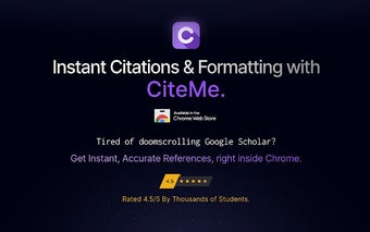 该应用程序用户友好,能够与 Chrome 浏览器无缝集成,提供即时的引用功能。它在几秒钟内格式化引用,确保用户可以专注于研究,而不被引用过程拖累。CiteMe 非常适合经常需要引用来源的学生,是提高学术写作效率的实用解决方案。